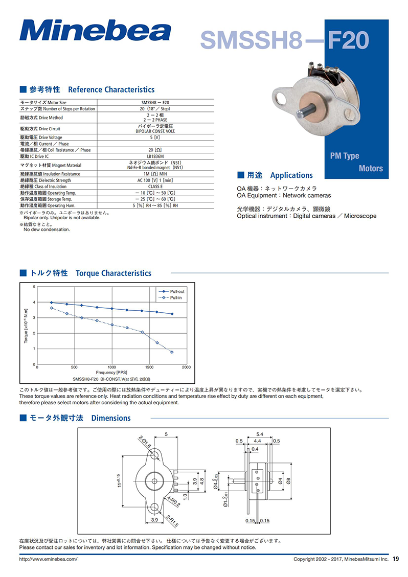 首页 > 供应产品 > NMB步进电机 > PM永磁式步进电机 > 小径型_smssh8-f20