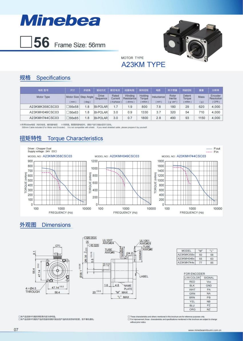 首页 > 供应产品 > NMB步进电机 > HB混合式步进电机 > 带编码器 A23KM